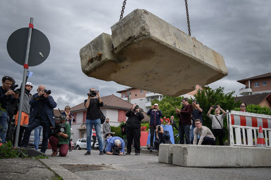 这张当地时间6月14日在法国托内拍摄的照片显示,工作人员正在移除瑞士-法国边境的路障。多个欧洲国家15日起陆续对欧洲联盟成员国、申根区国家或英国重新开放因新冠疫情关闭的边界,以期提振国内旅游业。新华社/法新
