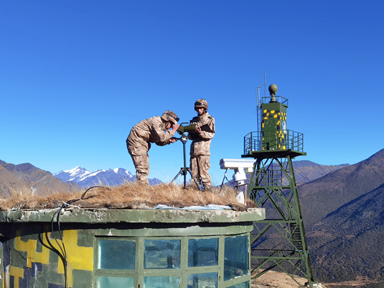 巡逻归来,笔者跟随柴威连长来到海拔4300多米的肖观察哨,看见哨长殷思远正操作远程监控系统,对主要山口进行观察。近年来,西藏军区大力开展信息化边防建设,肖观察哨成为首批试点单位之一。“以前我们要把辖区巡逻一遍至少要4天时间,现在只要4个人就可以实现全天候、全时段、全地域的持续监控,第一时间发现和处置各类情况。”今昔对比,殷思远感慨万千。2015年第一次执行巡逻任务,他和战友早上天还没亮就出发,沿着9公里的崎岖山路,走了近3个小时,才到达海拔4600米山口,一趟走下来,大家累得气喘吁吁。“现在一键在手,山口情况尽收眼底,‘耳聪目明’名副其实。”殷思远指着上级表彰的“耳聪目明”锦旗说。