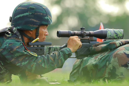 6月24日是最后一个比赛日,定点斩首暴恐分子狙击行动课目贯穿全天进行,按比赛要求,每个单位派出一个5人狙击小组参赛,包含指挥员1人、狙击手4人。