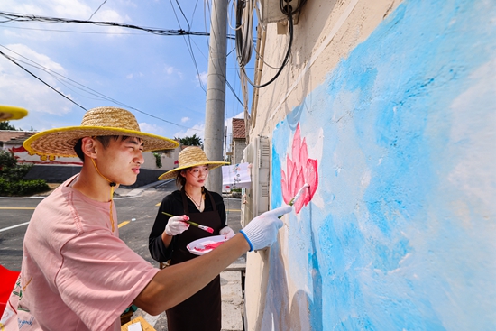 在芜湖市繁昌区峨山镇沈弄村,团队实地走访“五个一千亩”农业产业;在童坝村,大伙儿爬山越岭体会“溜溜果园”青梅基地的建设;在东岛村,同学们现场体验菊花烘干和竹笋速冻,用调研数据描绘乡村振兴带来的变化,记录乡村振兴中基层工作人员的点滴。