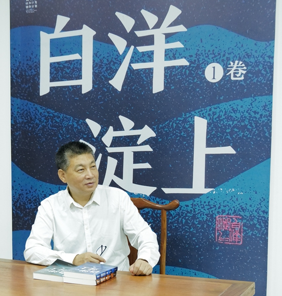 关仁山:《白洋淀上》是我第一次创作多卷本小说,构架人物关系是一个难题。最初写了一个3万字的提纲,朋友读了不满意,我自己也否了。我就开始读书,一边读书一边走进生活,生活是新鲜而丰富的,一切都要在深入生活中破解。后来我认识了白洋淀的朋友阿民,他带我走进了水村王家寨。王家寨人能说会唱,我们走村串户,现场感油然而生。人物原型王永泰就出现了,他是小说里的核心人物,紧接着,百岁铃铛老人原型又出现了……