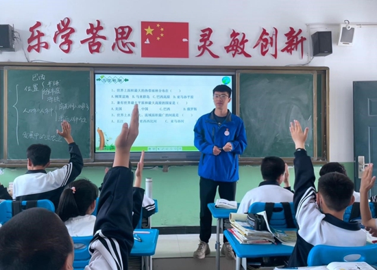 邓翊最终的支教地是海原县贾塘中学,负责地理教学工作。“十年前我上初一,十年后我教初一。”第一堂地理课前,邓翊十分紧张,课前演练了十几次。面对孩子们坐得端正笔直的身板和渴望求知的眼神,邓翊在心底暗下决心:“一定要全力以赴教好我的学生。”