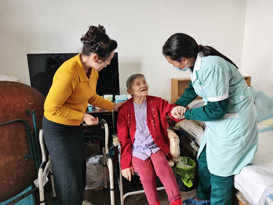 “阿姨,我来给您做护理啦!”11月的一天,养老护理员敬栓敏来到北京市石景山区古城街道的张秀荣家里。看到敬栓敏如约而至,93岁的张秀荣面露喜色,赶紧让女儿郝淑媛帮助自己从床上坐起来。“不着急,慢慢来。”敬栓敏小步上前,小心翼翼地搀扶张秀荣坐到床边的座椅上,麻利地为张秀荣测体温、洗脸洗脚、做肢体功能康复训练等个性化护理。