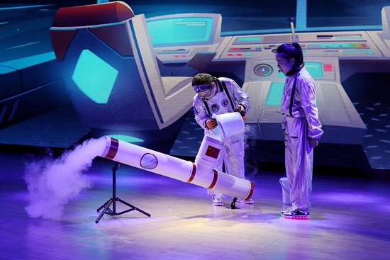 3月27日,浙江金华,在金华之光文化广场科普实验剧场,工作人员向学生们在展示“热胀冷缩”表演秀节目。当日,700多名中小学生在这里通过零距离互动中感知科学魅力。视觉中国供图
