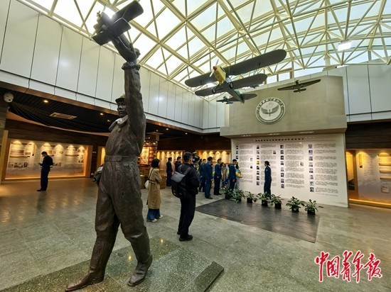 “新疆航空队是我党领导的第一支航空人才队伍,是党为缔造人民空军播下的一粒‘红色种子’。他们日后成为建立和建设人民空军的骨干力量,对人民空军孕育、发展、壮大有着至关重要的作用。”活动现场,官兵代表与驻地师生在纪念馆门前打卡红色地标,在海报墙上签名留念,并在红色讲解员王政芳的引导下参观展馆。