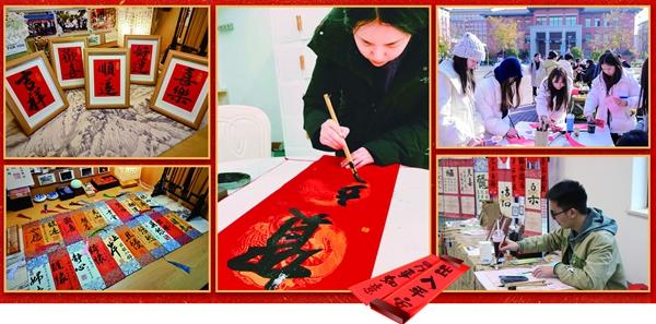 大连外国语大学的田一町5岁就开始写春联了,奶奶家里留存着她从小到大写的春联。“当给爷爷奶奶写春联时,我会写和丰收有关的,因为他们有仓房;给姥爷写,我就会结合他的名字来写。”看到家人幸福的笑脸,田一町觉得写春联这件事变得有意义了很多。