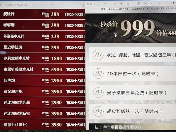 辛明南明确拒绝。几个人在接待室僵持了40分钟后,辛明南还是坚持只做1500元的超光子嫩肤和水光针项目。就在她开始打水光针时,技工突然称自己有急事,没做任何项目就走了。她这时才感到,自己遭遇了“美托”,“她们像编好了剧本,一起让我入套”。