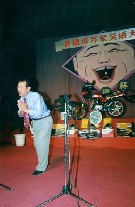当万荣人开始讲笑话,总是要拉开架势。几个经典动作是:身体前倾,右手背使劲儿拍在左手心,跺脚。