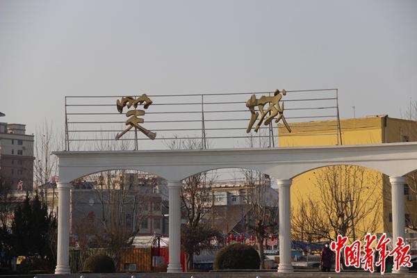 进入山西省万荣县城,县界“大门”楹联上挂着“笑城”一词。