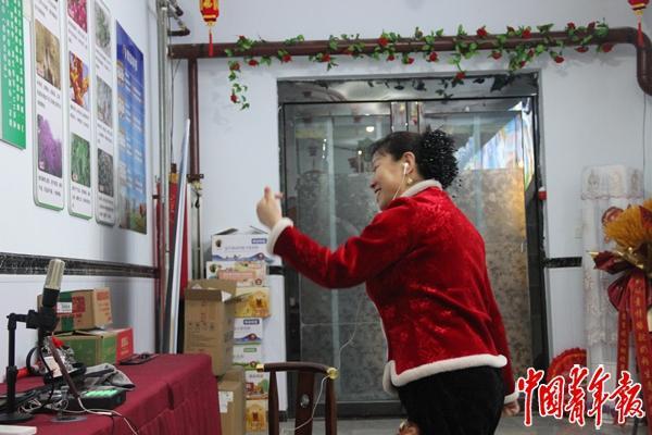 参加万荣笑话剧表演的李秀霞40多岁,2019年之前,当地笑话艺术团每年都有一个多月下乡演出,后来活动越来越少。她找了别的谋生路子,现在在网上卖驼奶粉。她的短视频账号以万荣笑话剧中的角色命名,坚持每天晚上8点直播。但是,这更像是一场典型的带货直播,弹幕里偶尔有人说:讲个笑话。讲笑话和唱戏,是这场带货直播的调剂。