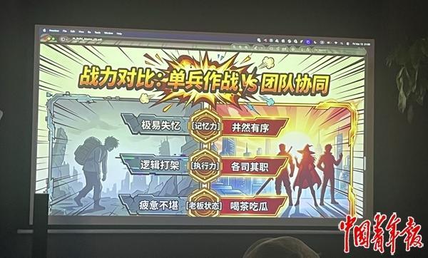 眼下,她有一只“龙虾”main agent作为主员工,它的手下,又有几个“龙虾”。这形成了一个分3个层级的团队。PPT上写着:赋予AI真正的组织感!