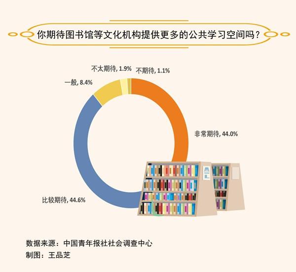 调查中,88.6%的受访者期待图书馆等文化机构提供更多的公共学习空间,其中44.0%的受访者非常期待。