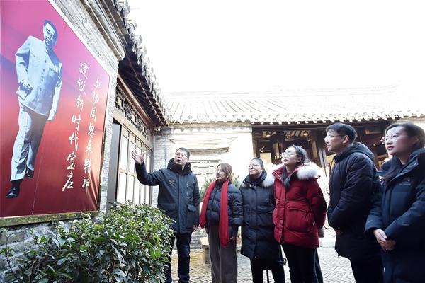 2024年12月29日,江苏扬州,华东师范大学广陵实验初级中学教师在“周恩来少年读书处——思政教育微课堂”上,聆听伟人“为中华之崛起而读书”的红色故事。视觉中国供图