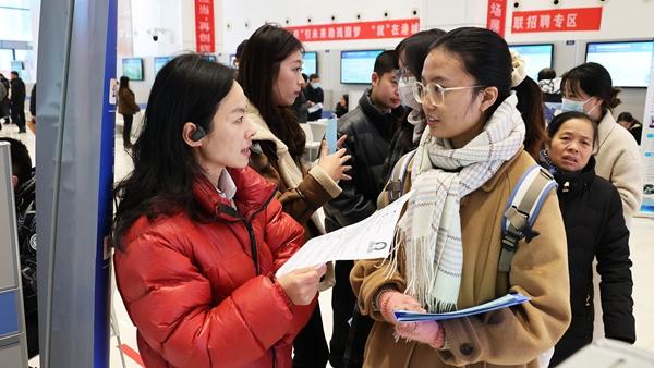 1月3日,江苏省连云港市人力资源市场,求职者在咨询了解岗位招聘情况。视觉中国供图