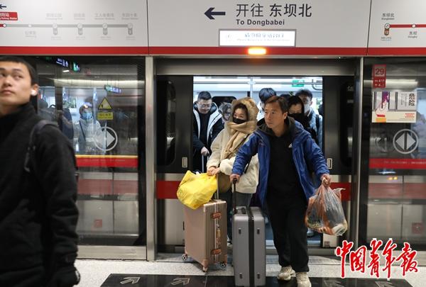 本报北京1月14日电(中青报·中青网记者 杨逸凡 见习记者 贾凯迪 李琪)1月13日晚,K4159次列车静静停靠在北京西站。站台上,挑着行李的刘竹林正在找自己的车厢和座位。担子前面放着他最值钱的家当——一台暖风机,底下垫着为数不多的衣物,担子后面是他的被褥。刘竹林是家里的顶梁柱,在北京务工近30年,如今妻子在家里带小孙子,他说再干两年也不干了,希望年过30岁的大儿子能早日结婚,了却他一桩心愿。