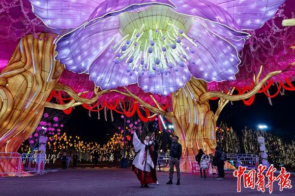 1月10日,北京温榆河公园,一支拍摄团队正在“2025北京千灯夜”现场拍摄视频。据了解,“2025北京千灯夜”设置四大篇章与八大主题区域,展出超千组自贡彩灯。作为“非遗技艺”的自贡彩灯以精湛工艺备受推崇,被誉为“东方艺术明珠”。本届灯会还从科技、游戏、潮玩、新能源等现代和未来元素中获取创作灵感,生动展示了现代科技与国潮文化的多元结合,打造北京市夜文化的网红地标,吸引中外游客游园赏灯,活动预计持续至2025年3月。