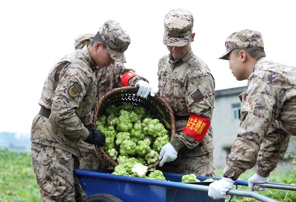 听着老乡对新战友的赞许,指导员陈首任不禁想起9年前自己刚从军校毕业,第一次参加助农抢收青菜头的场景:“那时,驻地大部分农户家中的青壮年都在外务工,抢收季节赶上阴雨连绵,山地湿滑,老人们坐在家中望着眼前的菜地直发愁。直到官兵们到来,他们悬着的心才放下来。那一次,我们前后花费3天,共计帮助驻地群众抢收菜头6万多公斤。”