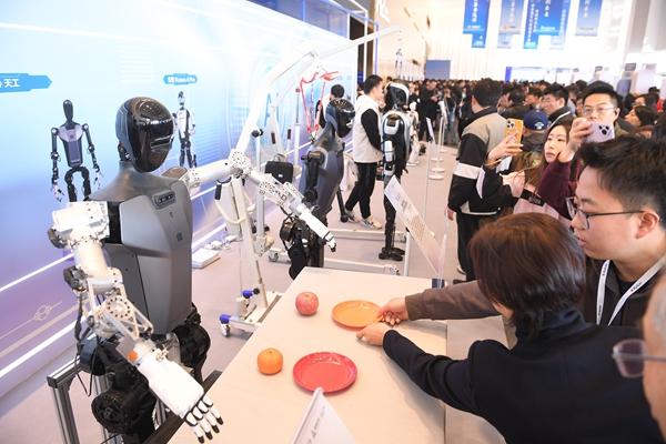 2月28日,第三届北京人工智能产业创新发展大会召开。大会外场展区吸引了众多参展商和观众参观。据了解,展区共吸引了56家AI前沿企业参展,规模空前。其中AI全场景应用展区,政务、金融、教育、医疗、文娱、制造等行业展区,展示了AI技术赋能千行百业,探索智能化转型的无限可能。北京青年报记者 付丁/摄