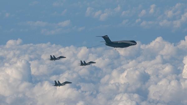 战场所需,训练所向。空中加油训练是开展高难课目的基础,此次空中加油训练紧贴战场实际调控进程,节奏相对紧凑。飞行员驾驶战机接续起飞,相继开展远程奔袭、对抗空战等课目,既有不同机型协同训练,也有大机群战术演练。