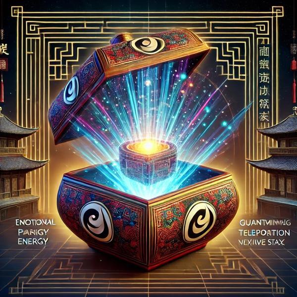 对于未来的流行趋势,李陈虎的想象颇具诗意:“情感交流、科技服饰、超能力、百宝箱、传送门。”透过他的构想,AI制作了一个“未来宝箱”——外层是可变色科技面料,内部悬浮着发光粒子与量子传送门。