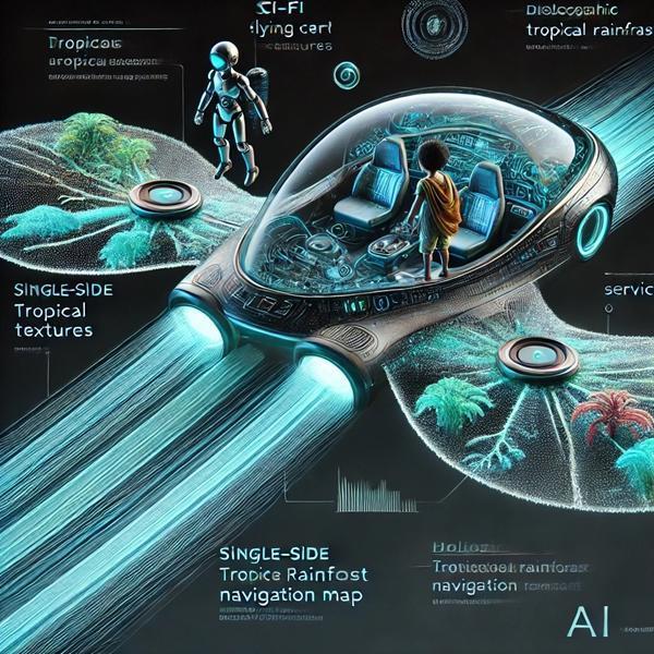 对布兰来说,未来的AI世界意味着“飞行汽车、机器人、伙伴、科学、数据”。在这5个词的框架下,AI描绘的“珊瑚礁悬浮飞行汽车”充满科幻色彩——热带雨林全息导航图在车窗浮动,数据代码在外壳流淌,电子藤蔓于车顶发光,展现出技术赋能创意设计的无限可能。