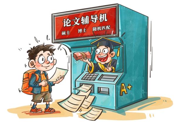 当前,社交平台出现了以“论文辅导”为名,实则为代写的灰色产业链。部分培训机构以“学术论文速通”“高校博士/导师辅导”等为宣传噱头吸引学生,实质服务过程中却存在问题:辅导教师资质不明,多由在校大学生兼职代笔;收费标准不透明,常出现中途加价;退款维权渠道不畅,消费者维权难度大。此类乱象的治理,需要加强跨部门执法协同,健全法律界定标准,推动学术诚信教育。漫画:程璨