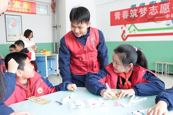 中建路桥集团建设发展有限公司青年志愿服务队队员近日来到河北省井陉县良河西寄宿制学校,通过生动活泼的语言和通俗易懂的故事,为孩子们上了一堂弘扬社会主义核心价值观的主题课,并和孩子们一起开展主题创作。孩子们用稚嫩的双手描绘出一个个精美的主题书签,纷纷表示要争当爱国小公民。刘林瑶 段妤/摄