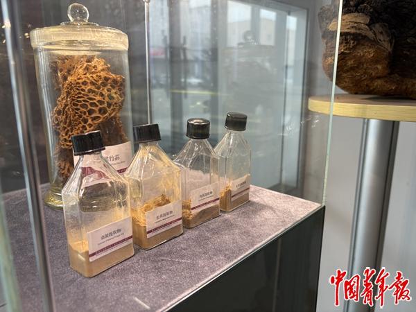陈喜君目前是中科优术(黑龙江)科技产业有限公司(以下简称“中科优术”)的负责人,也是黑龙江省菌物药工程技术研究中心主任。在该公司展厅,记者还看到了多款用蘑菇做的产品。有猴头菇益生菌饮料,有姬松茸等多种蘑菇做的乳清蛋白复合粉,还有蘑菇咖啡、蘑菇茶。