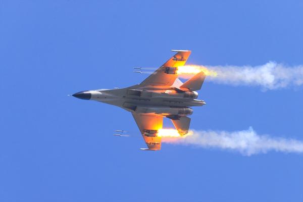 近日,空军某部开展地靶实弹训练。图为飞行员驾驶战机发射火箭弹,对地面目标发起攻击。崔保亮/摄