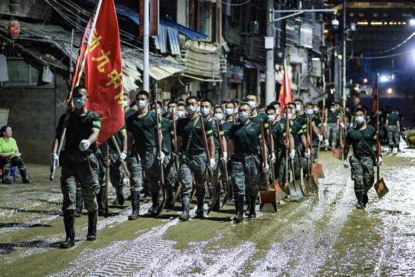 在洪峰抵达前的1个多小时里,他带领战士们转移疏散了430多名受困群众。