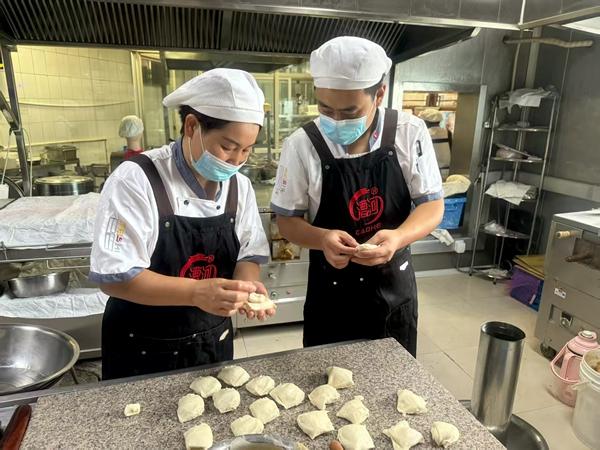 后厨内,师傅们用模具制面坯、电铛烙火烧、机械臂切肉,一炉三四十个驴形驴火很快端上餐桌,比传统手工制作用时缩短近一半。“除了驴奶冰激凌,我们新推出的驴形袖珍火烧也很受欢迎。”徐水漕河驴肉加工技艺省级非遗代表性传承人刘敏英介绍,传统美食“出彩”“出圈”,既要守护“老汤卤制”的非遗基因,更要拥抱智能化生产与年轻化表达。
