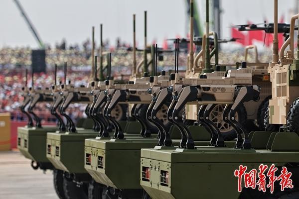 这次阅兵,无人作战群是一大亮点。多款地面、空中、海上新型无人智能作战装备首次公开亮相,无人艇、无人潜航器、水下无人布雷器、舰载无人直升机、多款地面无人战车,包括无人僚机在内的多款无人机首次公开展示,全面反映了我军现役无人作战装备的快速发展和综合实力,也标志着我国在这一领域全面达到世界领先水平。