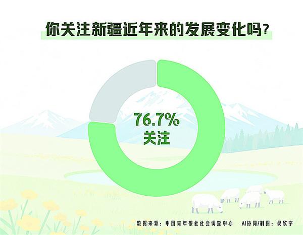 今年是新疆维吾尔自治区成立70周年。近年来,《我的阿勒泰》等影视剧的热播掀起一波新疆旅游热潮,新疆也受到越来越多人的关注。近日,中国青年报社社会调查中心联合问卷网(wenjuan.com),对1668名青年进行的一项调查显示,61.0%的受访青年去过新疆。76.7%的受访青年关注新疆近年来的发展变化。社交媒体平台(65.3%)和新闻媒体报道(60.0%)是受访青年关注新疆的主要渠道。