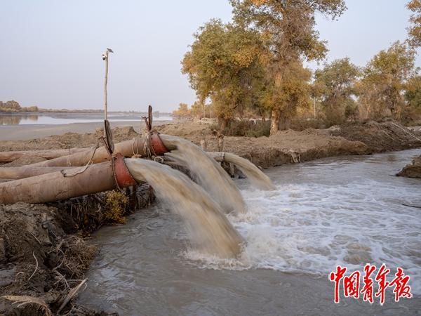 塔克拉玛干沙漠北缘的阿瓦提县艾西曼区域此前受沙尘暴威胁,周边5个乡镇的农业生产受到影响。5年前,当地启动生态修复项目,通过跨区域调水破解“有地无水”难题,同时利用城市近郊优势,将污水处理厂再生水经深度处理后,通过管线与引水渠注入,实现了水资源循环利用。