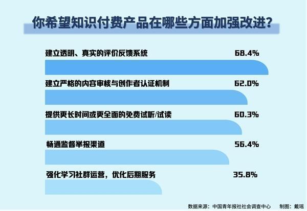 68.4%受访青年希望建立透明真实的知识付费平台评价反馈系统