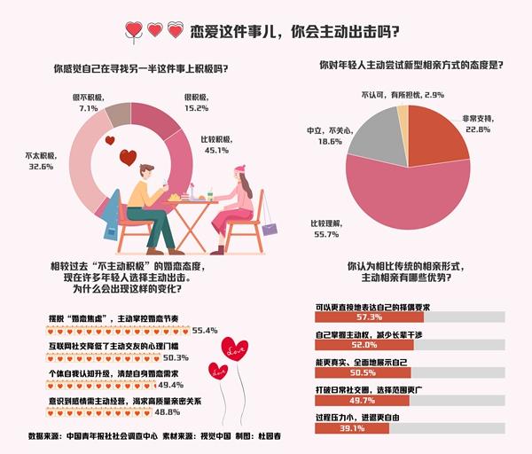 “年轻人活得越来越通透了。恋爱、婚姻本就是人生中特别的存在,为何不早一点去尝试?”广东湛江的95后胡楚觉得,年轻人主动“打开”自己,勇于追求自己想要的,面对感情坦然真诚,这对个人未来成长也大有裨益。