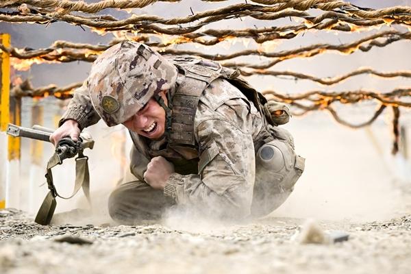 近日,新疆军区某合成团组织官兵进行战术基础动作训练,锤炼血性胆气。 周凯威/摄